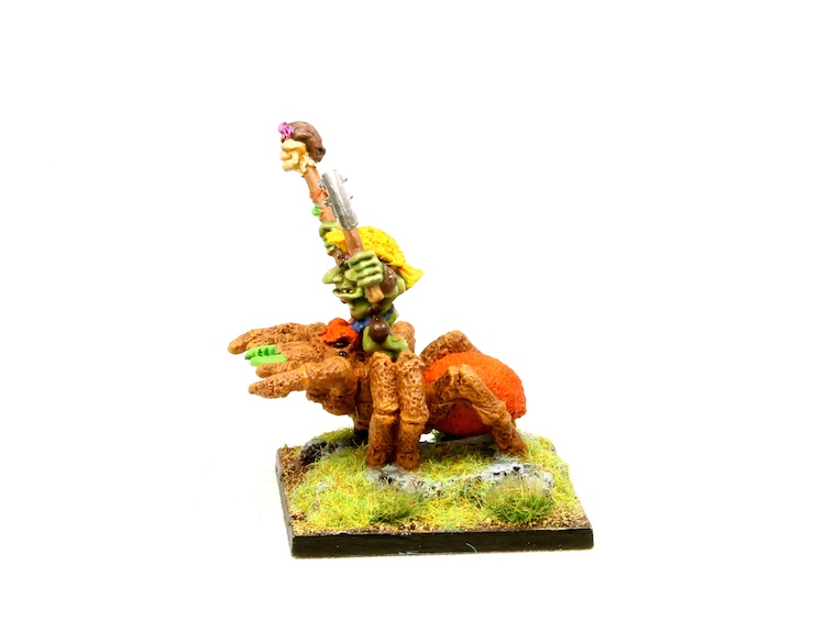 Zrazoig, the almighty Shaman, and his trusted sacred spider, Fang the hairy (Forest Goblin Shaman on Gigantic Spider) : 128pts