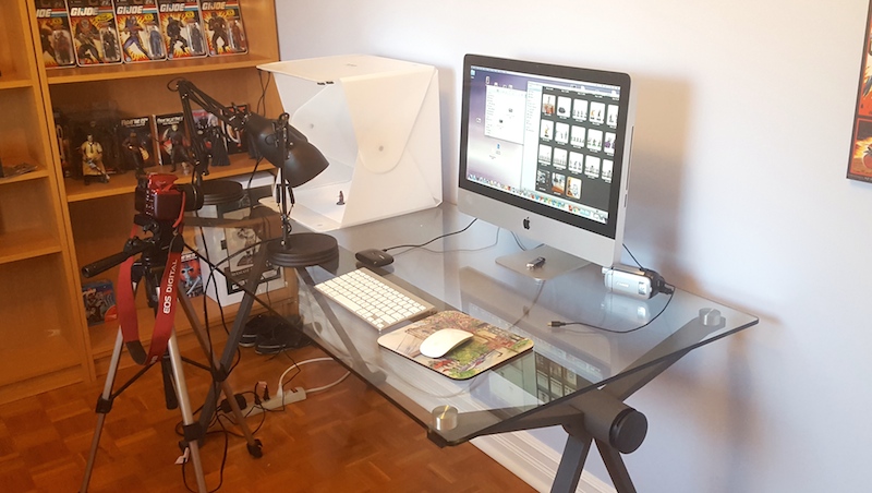 While perusing an Oldhammer blog, I found a review for the Foldio lightbox; it's a cheap lightbox, incredibly easy to assemble, small enough to fit on an office desk. And it was available through Amazon! And finally, it looks quite good and fits very well with the aesthetics of my Mac computer and office in general. I actually bought the Foldio 2, which is bigger and has more light than the Foldio 1, two problems mentioned by Matthew in his blog.